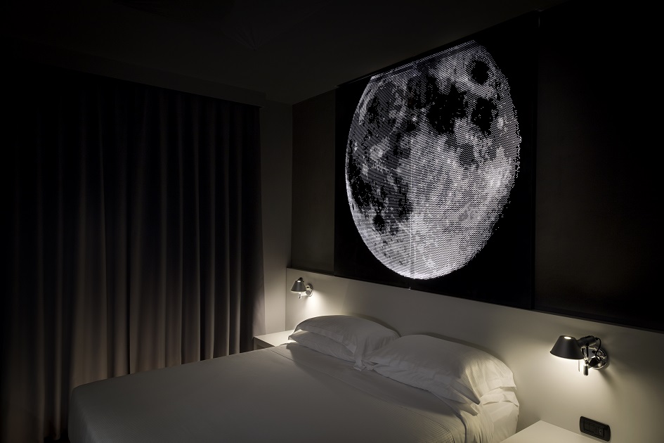 Pannellatura in acciaio calamina, texture personalizzata, retroilluminato per regalare in camera un'atmosfera unica