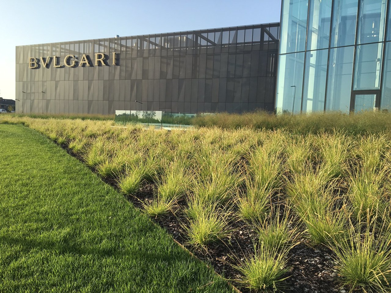 Rivestimento Bvlgari in lamiera forata in alluminio anodizzato color blu notte